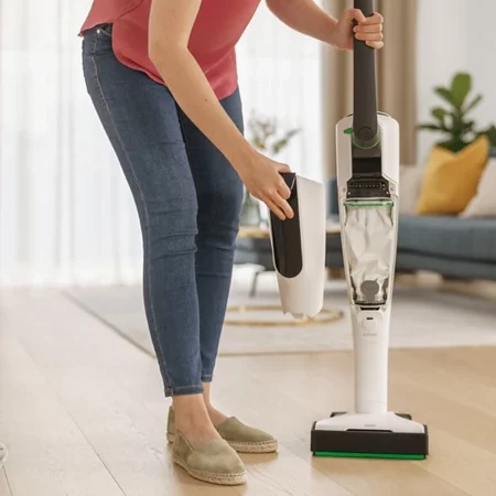 Saugen und wischen in einem Arbeitsgang, alles bequem ohne Kabel. Für alle Hartböden geeignet.